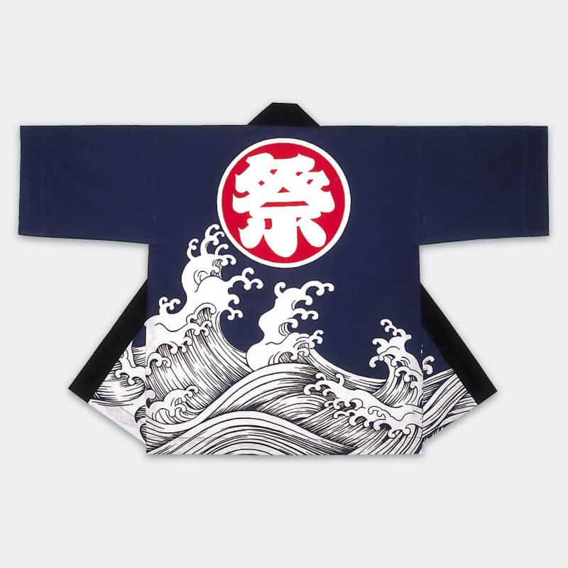 大人袢天【に印】祭・踊り袢天(濃紺・波)