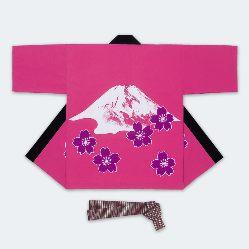 大人袢天【活印】シルクプリント袢天 富士山・ピンク