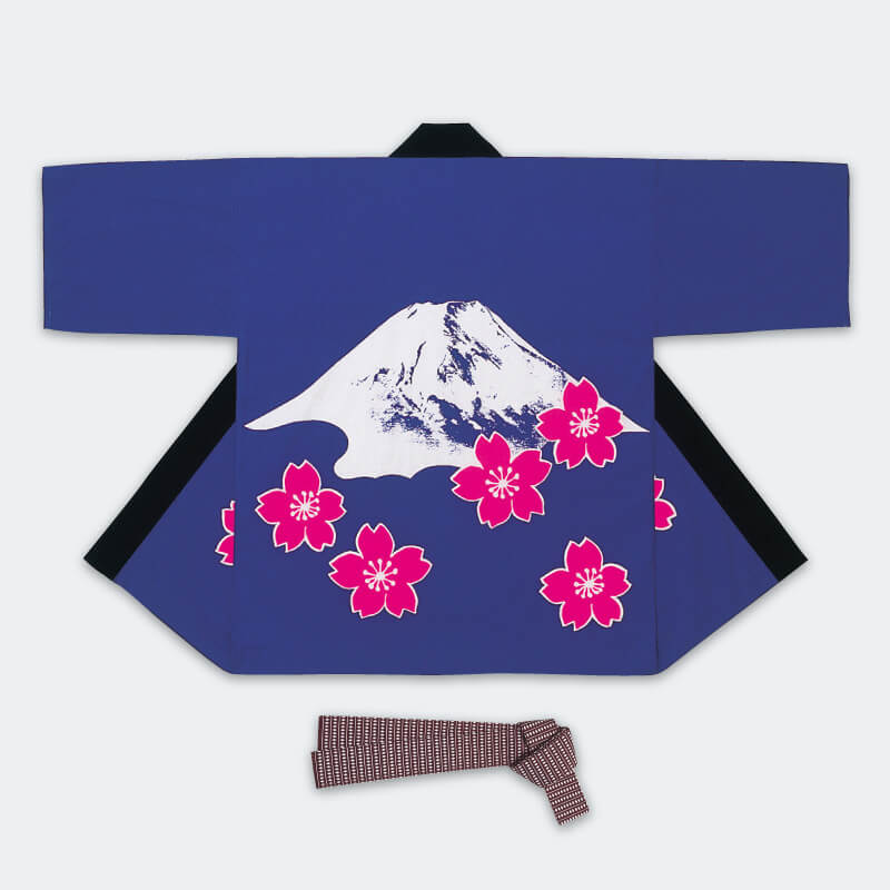 大人袢天【活印】シルクプリント袢天 富士山・青