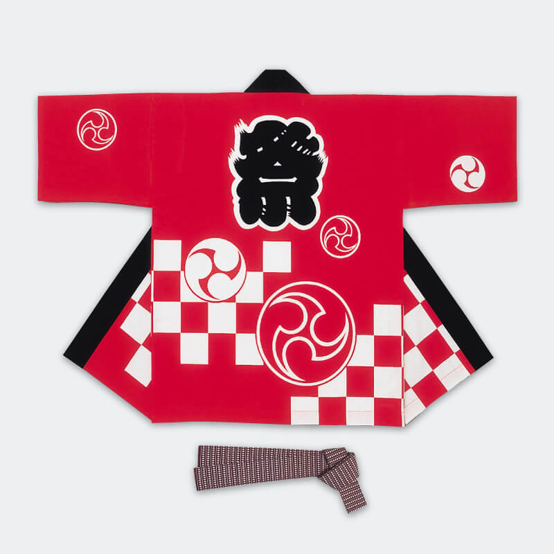 大人袢天【活印】シルクプリント袢天 祭・赤