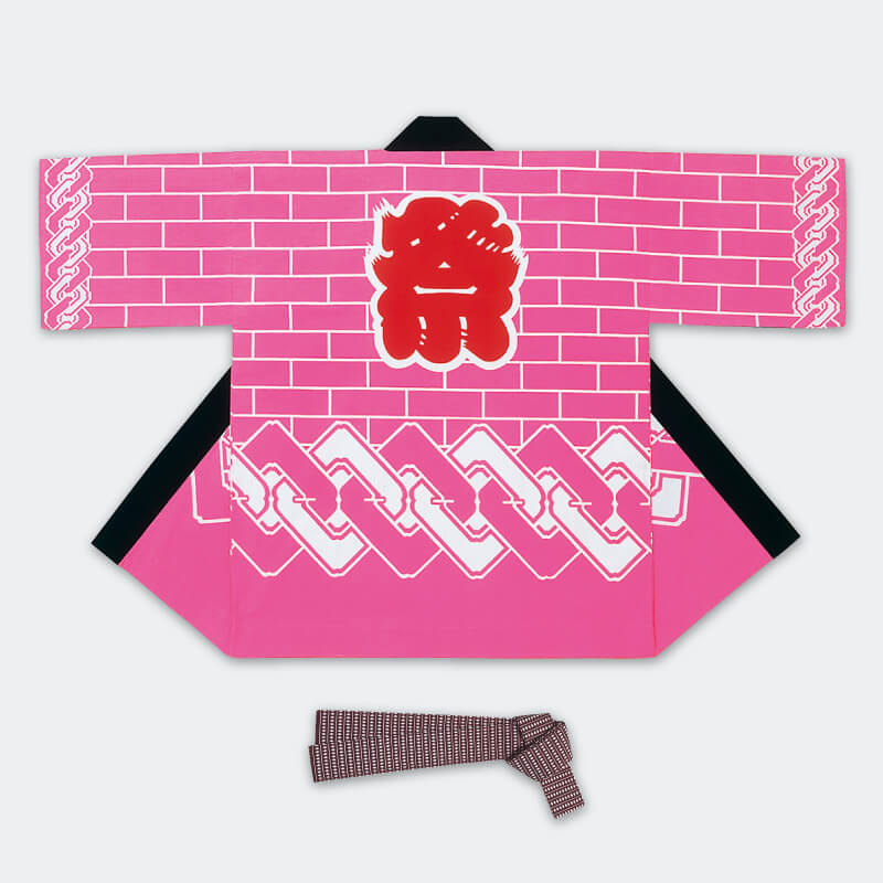 大人袢天【活印】シルクプリント袢天 祭・ピンク
