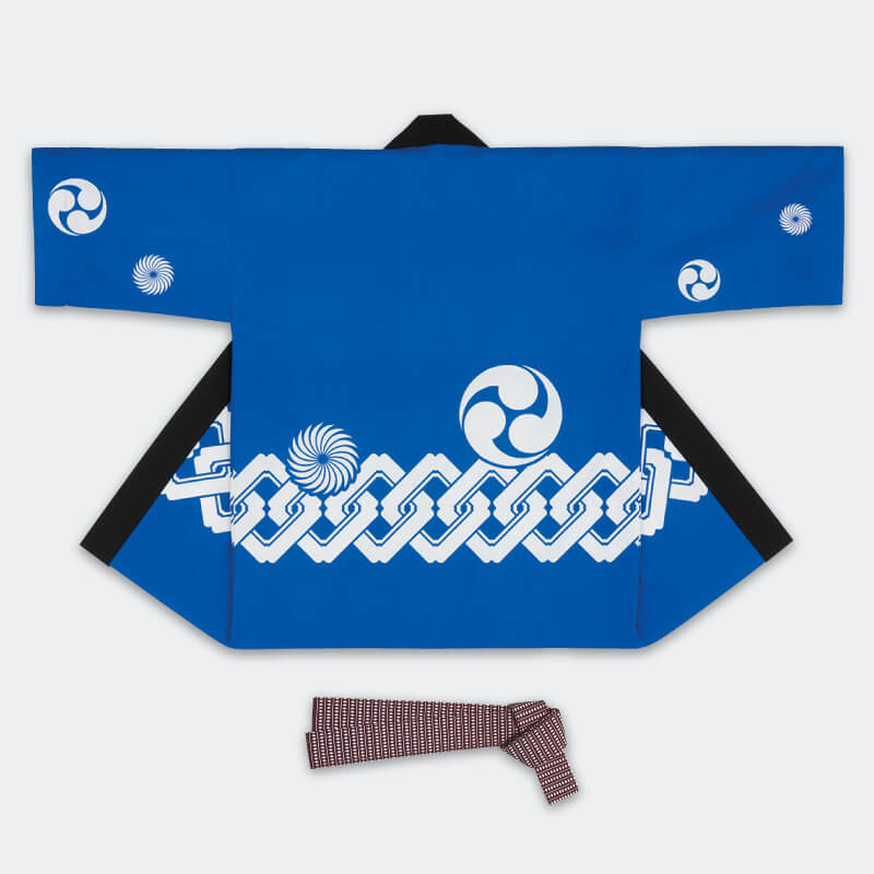 大人袢天【活印】シルクプリント袢天 祭・青