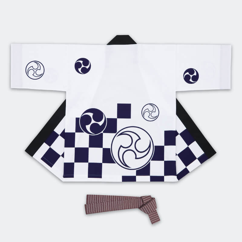 大人袢天【活印】シルクプリント袢天 三つ巴・白/紺