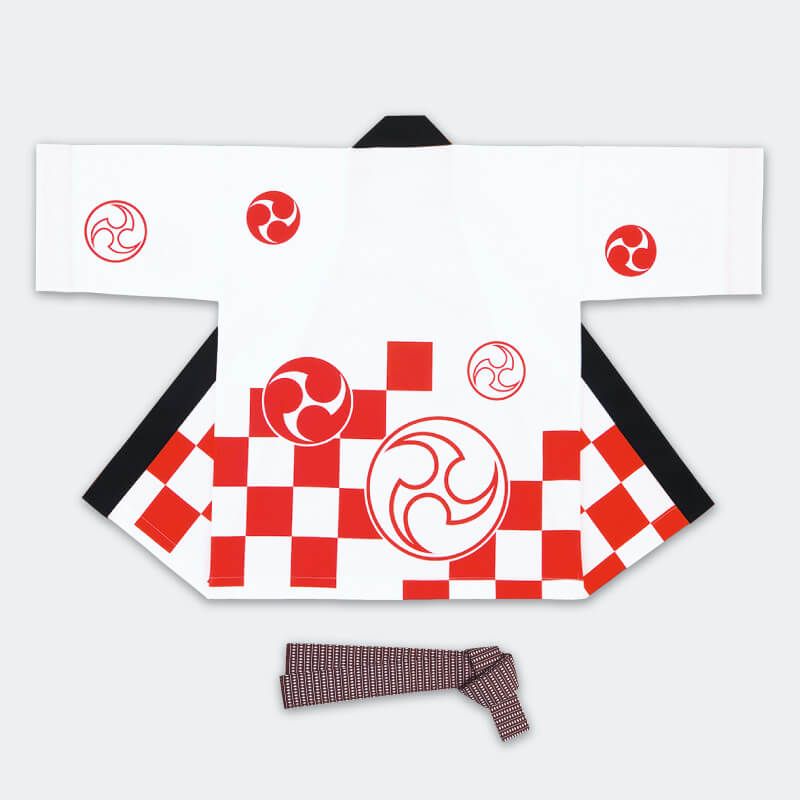 大人袢天【活印】シルクプリント袢天 三つ巴・白/赤