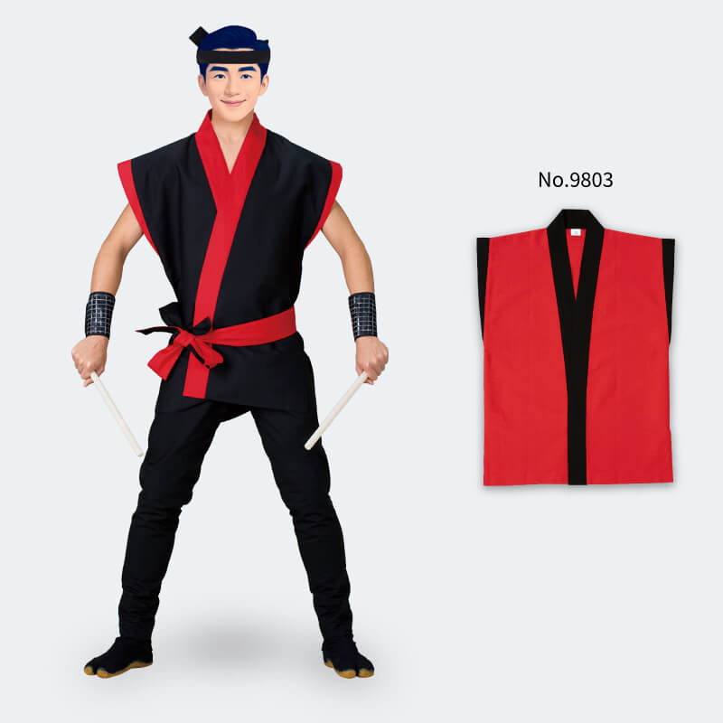 【駿印】袖なし袢天 赤(黒)