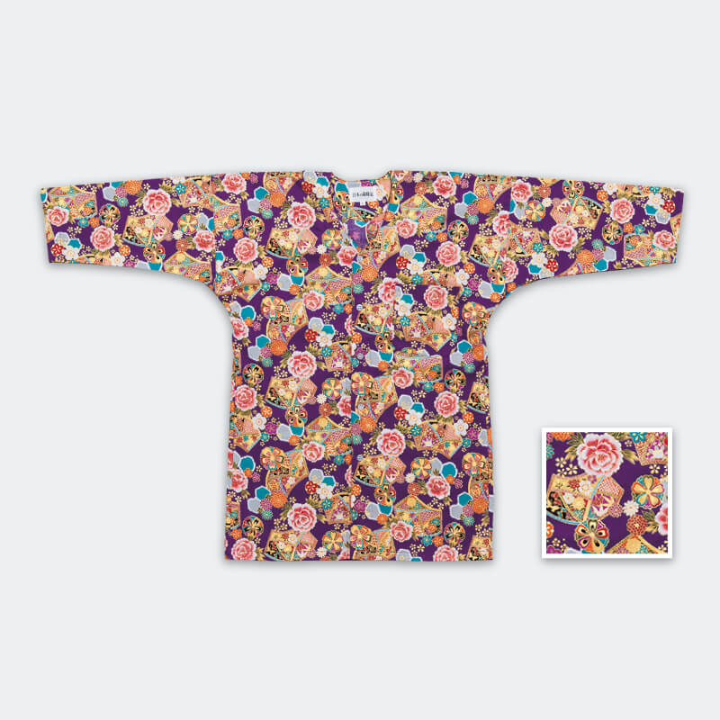 シャツ【凱印】鯉口シャツ 紫地に花