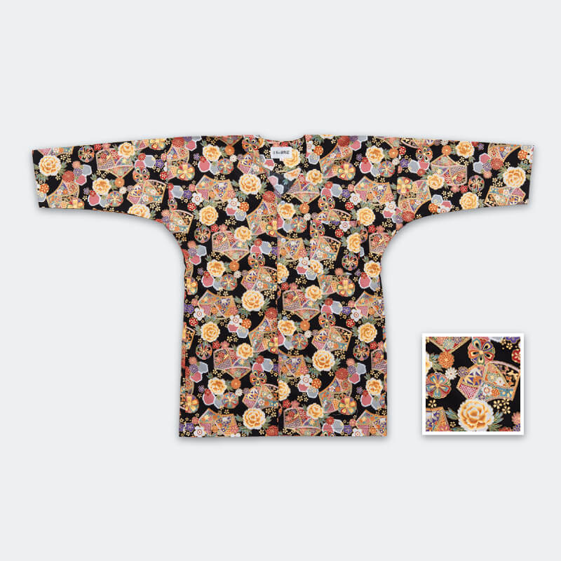 シャツ【凱印】鯉口シャツ 黒地に花