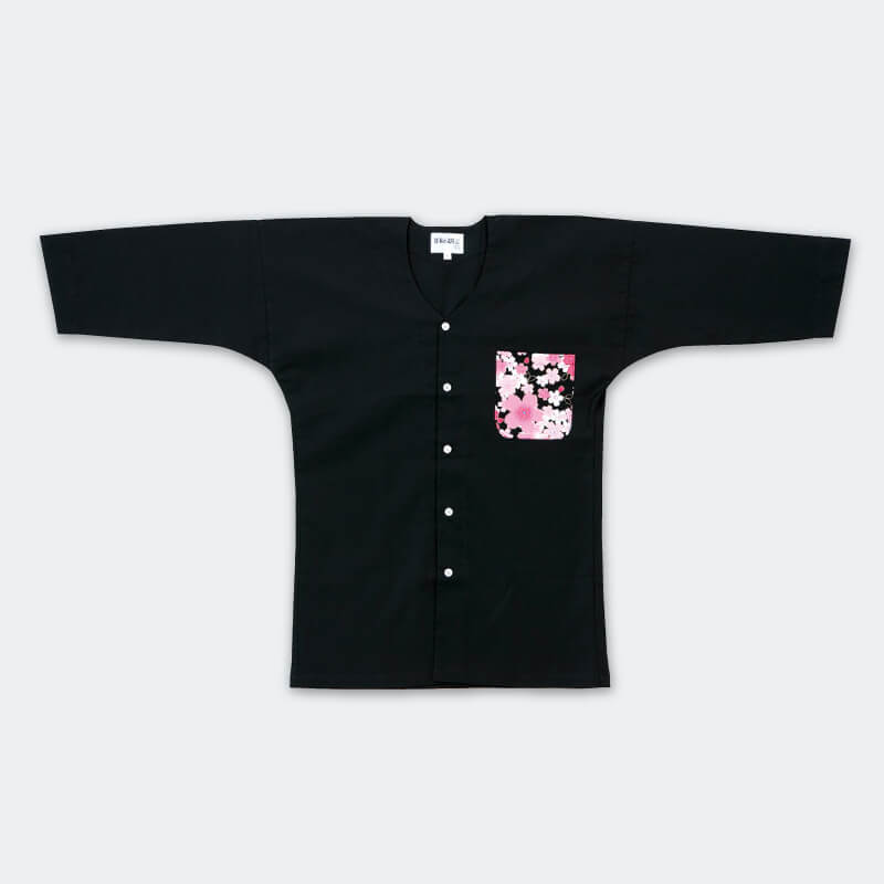シャツ【点印】ワンポイント鯉口シャツ 黒(桜)
