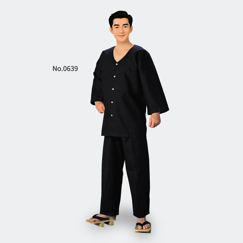 シャツ【点印】ワンポイント鯉口シャツ 黒(だるま)
