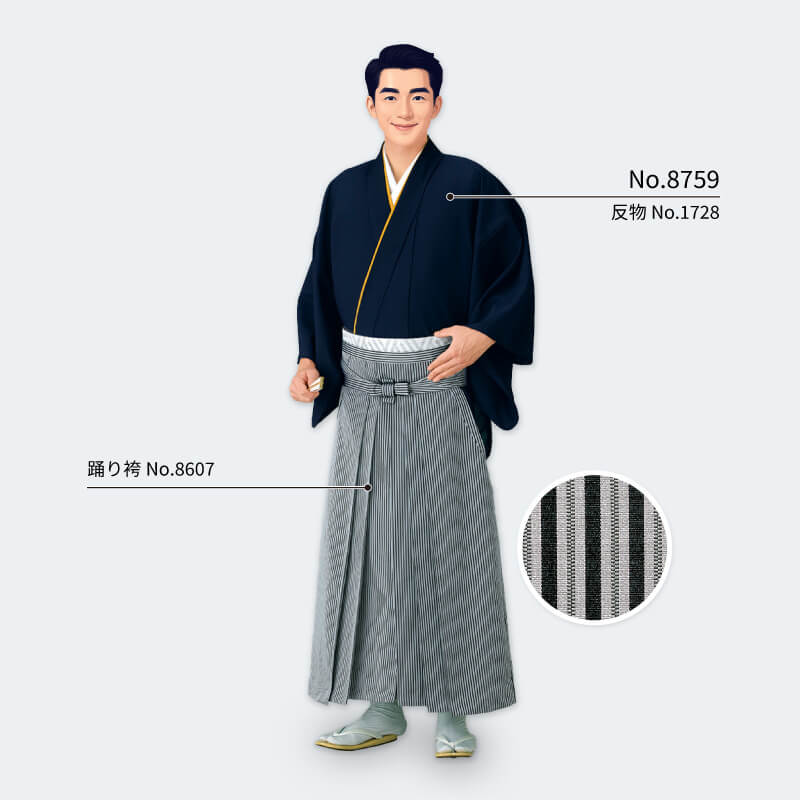 【伏印】キング袴下着物 濃紺(伊達衿付)