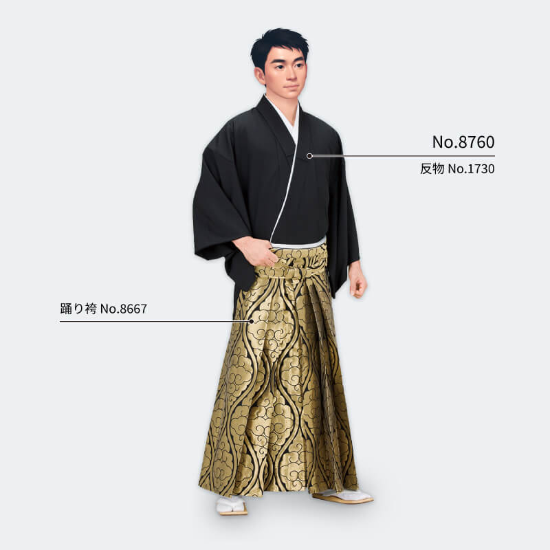 【伏印】キング袴下着物 黒(伊達衿付)