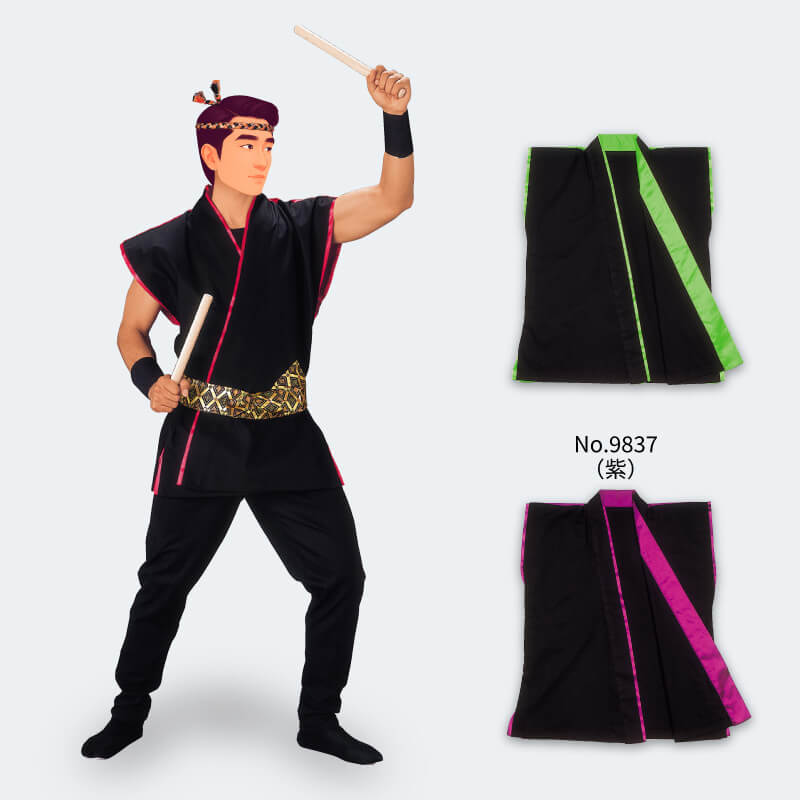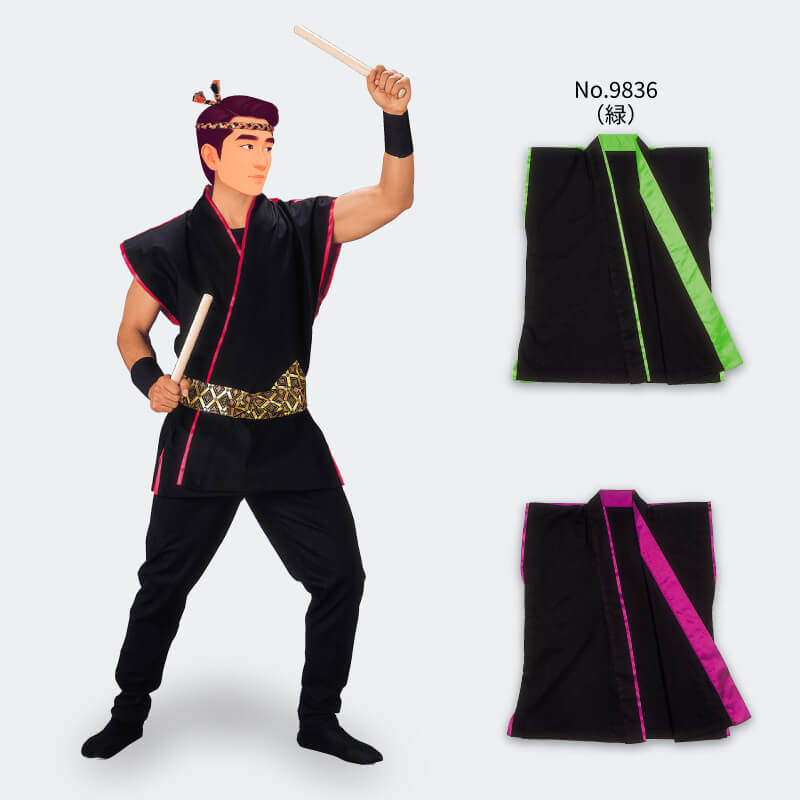 大人袢天【斬印】袖なし袢天 黒(ピンク)